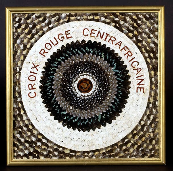 La Croix-Rouge de la République Centrafricaine a offert ce collage d’ailes de papillons au Comité International de la Croix-Rouge (CICR) pour l'aide médicale apportée lors de la mutinerie de Bangui (18-27 mai 1996).