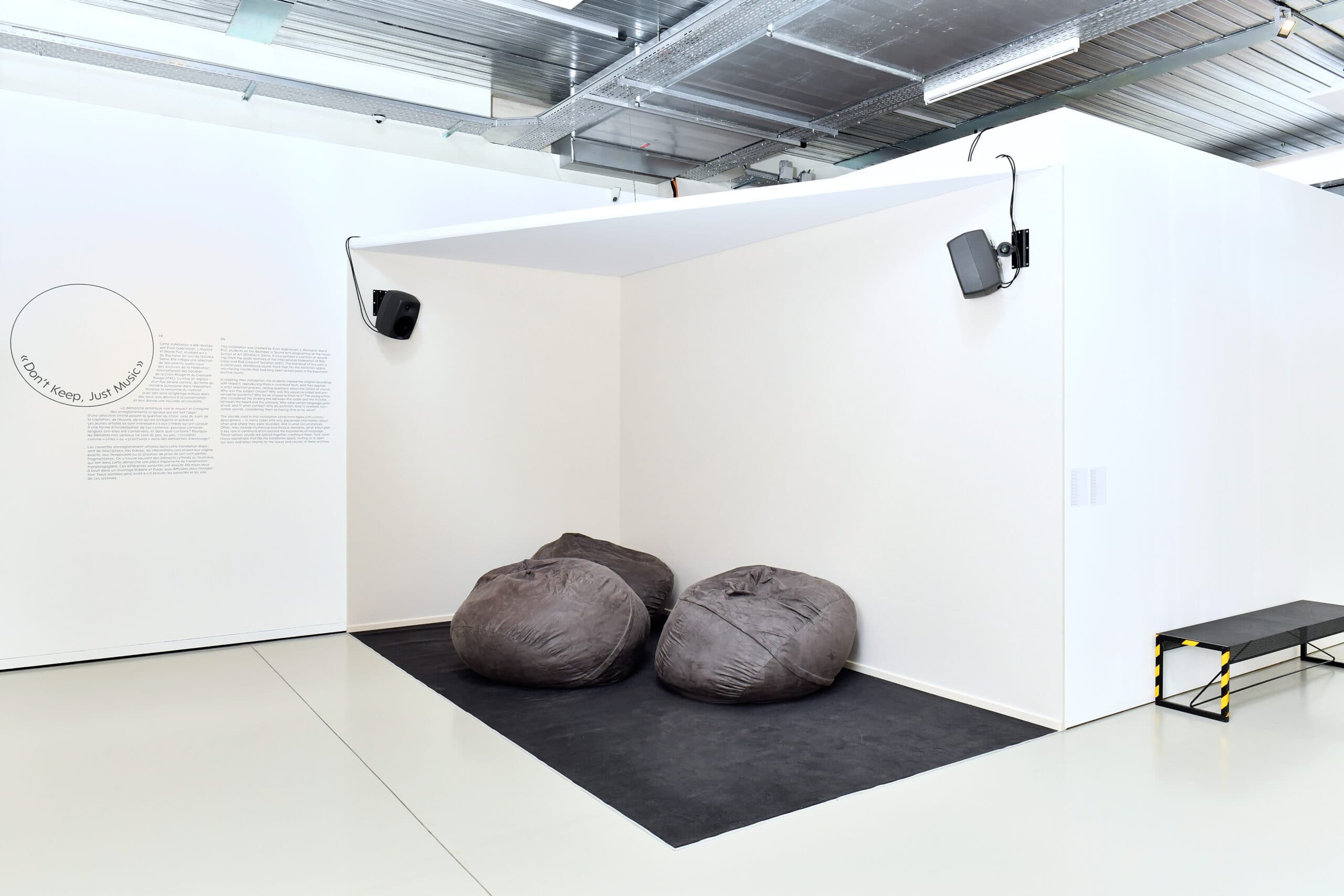Bandes sonores et enregistrements d’époque, affiches, photographies et objets de prisonnier·ères y côtoient des œuvres d’art historiques et de nouvelles productions de Manal AlDowayan, Betty Danon, Marco Donnarumma, Gregor Hildebrandt, William Kentridge, Christine Sun Kim et Thomas Mader, Piero Mottola, Julia Scher et Dana Whabira. L’exposition entend redécouvrir les archives sonores du CICR, ainsi que celles de la FICR, avec des perspectives décoloniales, féministes et inclusives, afin d’aboutir à une constellation de relations entre le son, les archives et l’action humanitaire.